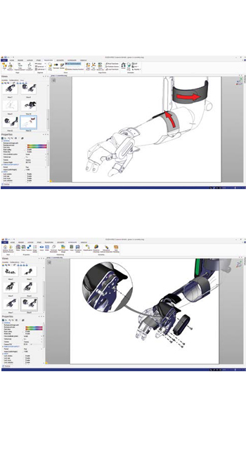 不再用粗糙的工程图来展示您的概念,使用 SOLIDWORKS Composer,您可以快速方便地创建详细视图,爆炸视图, 高分辨率图像,技术图解,交互式动画,交互式材料明细表 (BOM) 和零件清单